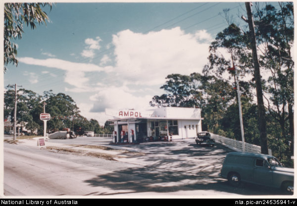 The old Ampol service station at Pennant Hills c1960 on the corner of Pennant Hills and Trebor Roads.